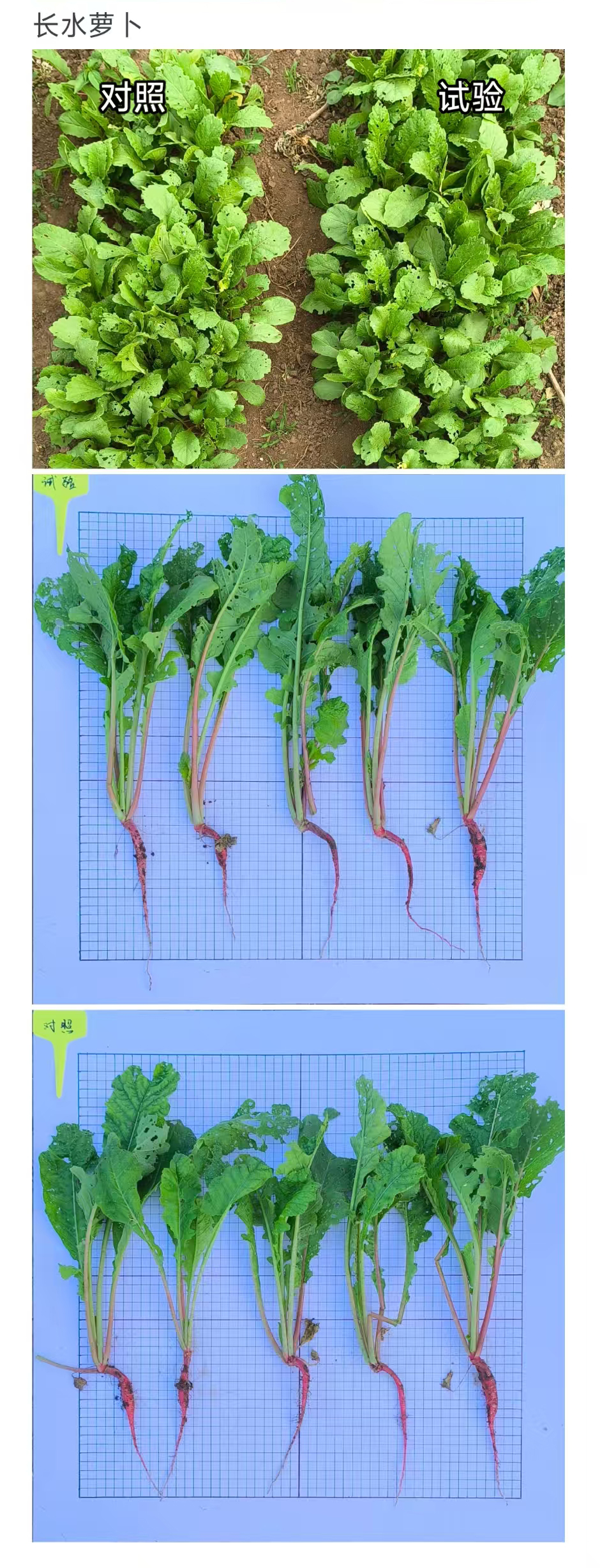 施用产品的萝卜,根部肥硕,叶片舒展,长势更好。